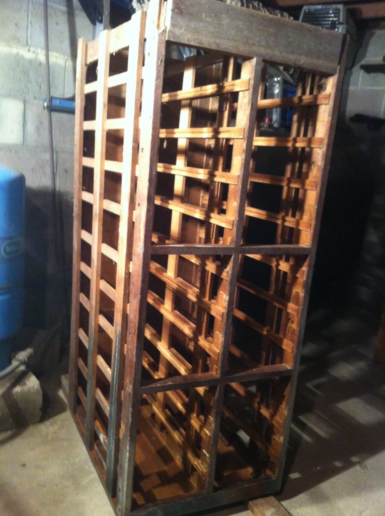 For strength, the sides and face frame were squared to the raised panel back … nails, which initially held the piece together, were replaced with screws .. all non moving joints were rejoined and clamped and a pressure treated base was affixed, basically only to serve the purpose of being in a wet basement. I had wanted to make new side panels at the time but I was terribly under tooled in my shop and have just not gotten around to it since … heck with it anyway, I wanted it to look as I remembered and it never had finished side panels as long as I knew it.