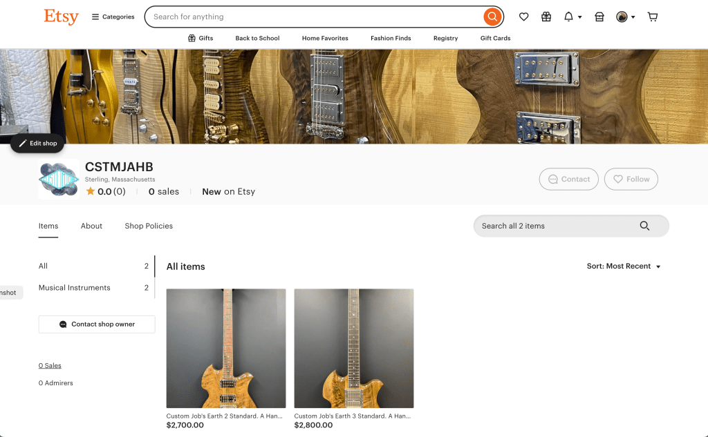 Custom Job Musical Instruments is officially selling stuff. Presently, only two guitars are up but there’s two more on the way of the EarthII model, after which, I’m going to focus on repairs and restoration while working on a few acoustic projects I want to take on. But I’ll be adding smaller things along the way like fretboards, pickup surrounds, custom knobs, etc.
